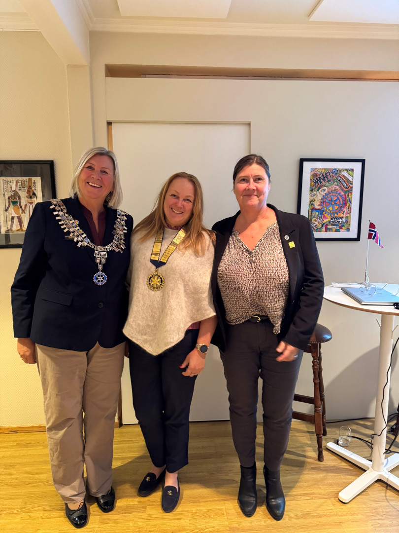 Hyggelig besøk av Distriktsguvernør Astrid Danielsen og Assisterende Distriktsguvernør Siv Emanuelsen. Klubben fikk presentert årets motto "Unite For Good" og at Rotary er så mye mer enn det man først får inntrykk av.
